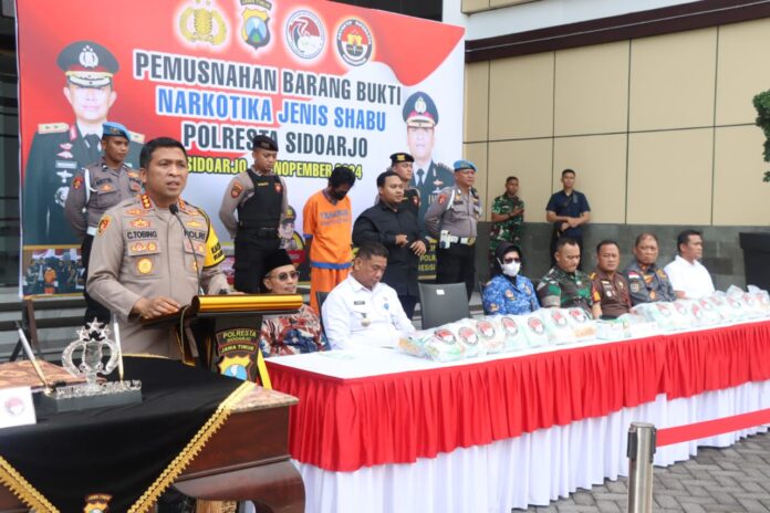 Pada kesempatan ini, Kapolresta Sidoarjo Kombes. Pol. Christian Tobing mengatakan bahwa pihaknya berkomitmen penuh memerangi peredaran dan penyalahgunaan narkoba di wilayah Kabupaten Sidoarjo Jawa Timur.